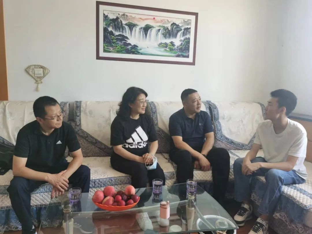 7月21日上午,我院党委书记刘美玲,党委副书记兼副院长张伟、综合办公室主任兼大学物理教学部主任张天臣,团总支副书记宝力尔一行4人,来到了家住呼伦贝尔市海拉尔区的2021级电子信息科学与技术班高天宇同学家中,高天宇见到老师们的到来,十分激动,班主任宝力尔和家长交流了学生在校的表现,刘美玲书记详细询问了学生家庭情况,进一步了解学生的成长环境,并就学生的大学学习计划进行了指导。高天宇同学即将开始大二的学习生活,张伟书记向其说明了大二的重要性,就如何做好职业生涯规划进行了细致地分析,高天宇同学表示,毕业后希望能够考研,用自己所学为家乡的发展尽一份力量。