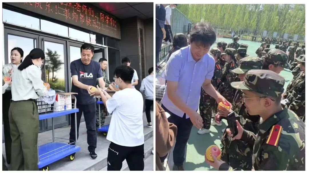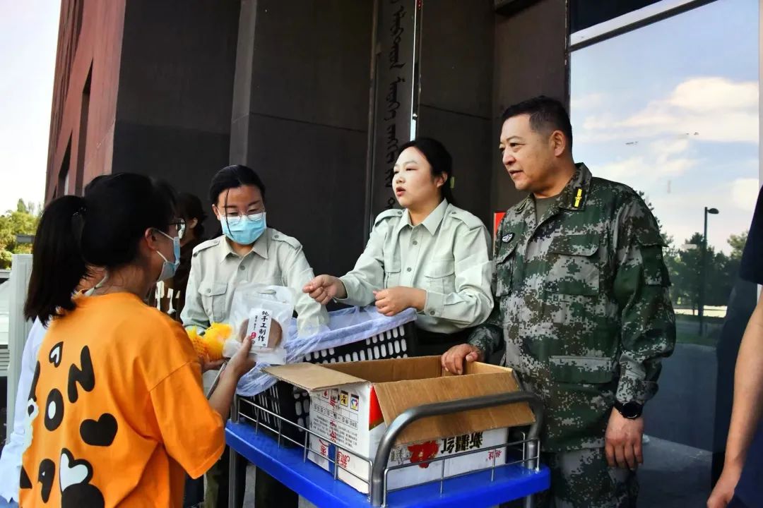 9月10日上午,我院院长曹永军、党委副书记兼副院长张伟、学就办副主任王乐、团总支副书记宝力尔、辅导员吴亚楠老师与2022级新生各班班主任一行带着中秋的祝福来到操场,为我院2022级新生送来了香浓的月饼和甘甜的苹果。