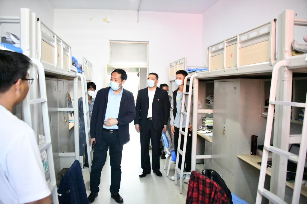 为了把疫情防控工作落到实处,不走形式、注重实效、真抓实干,把疫情防控的主体责任主动担起来,接到学校疫情防控工作安排后,由我院曹永军院长、张伟副书记带队,环节干部、辅导员,班主任代表组成的第一梯队11名教师立刻进驻校园,封闭管理,与学生同吃同住,保障同学们的日常生活。我院入驻校园人数为各学院之最,为学校疫情防控工作做出了巨大贡献,受到学校的表扬。9月30日晚,曹永军院长响应学校号召入校,全面组织协调学院抗疫工作。作为西区7号楼送餐负责人、东2宿舍包联领导,他充分调动我院各部门抗疫积极性,坚定党员教师服务意志与决心,保证防疫物资储备充足;发动任课教师开展课程思政,确保学生线上学习有序有效进行。