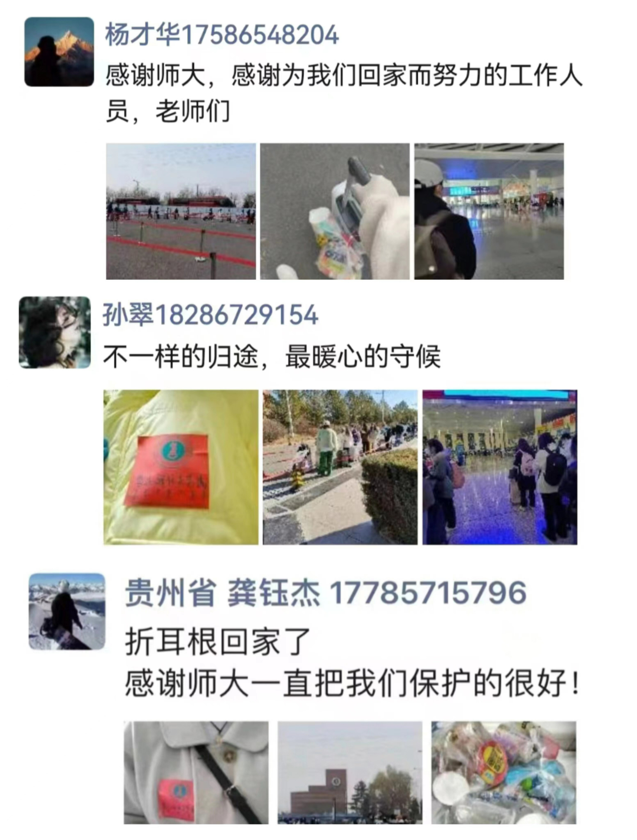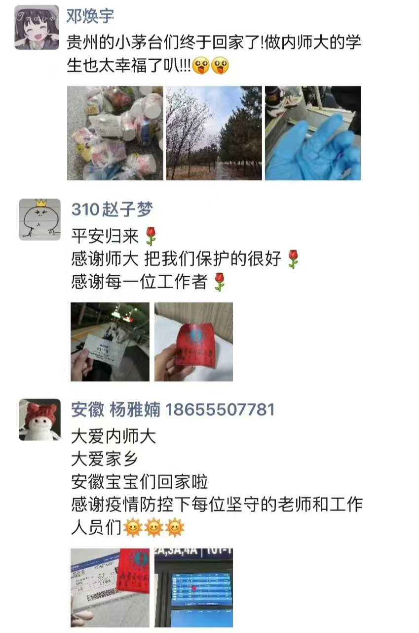 感谢师大老师的一路陪同,帮助火车上晕车不舒服的学生,帮助我们在火车上放行李箱 。在政府和学校的帮扶下我们才得以安全返回家乡,蟹蟹啦!另外,在学校的同学们也不要着急,相信在政府的努力协商对接下你们都能够早日平安回到家乡!