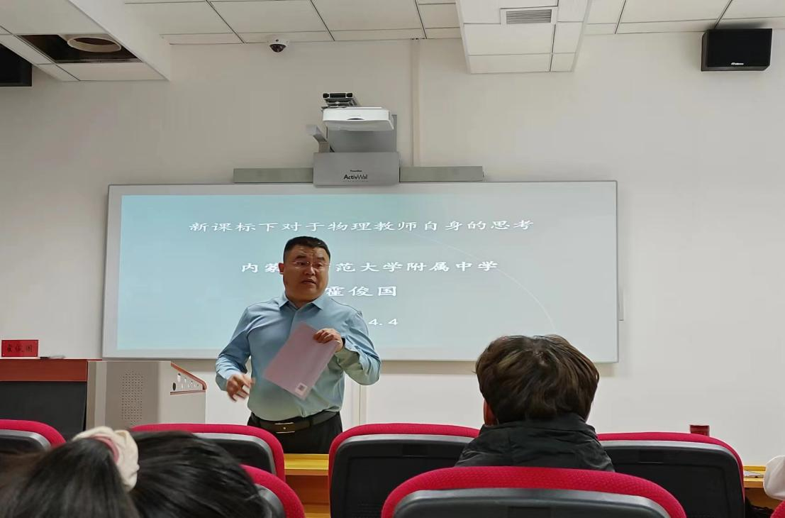 4月4日,我院教育硕士学位点邀请永利官网附属中学教师、永利官网专业硕士实践导师霍俊国老师做题为“新课标下对于物理教师自身的思考”专题讲座。学院本硕学生、学科教学(物理)研究生导师聆听了本次报告会。