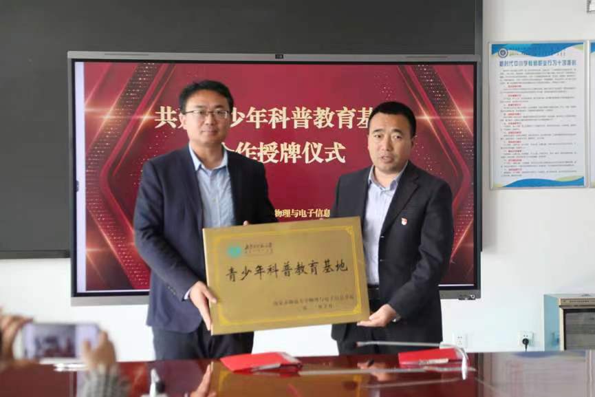 10月18日上午,我院副院长那日苏教授、副院长包黎红教授、物理系副主任孙咏萍教授联合科学技术史研究院副院长姜红军副教授与呼和浩特市第三十中学(永利官网附属第二学校)校长董双龙、副校长孙越东及相关老师在第三十中学举办了共建“青少年科普教育基地”合作签约和授牌仪式。