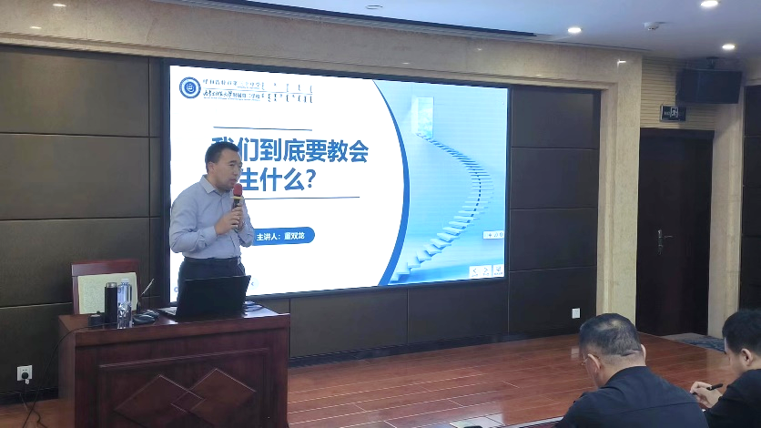 董双龙校长以“我们到底要教会学生什么?”为题,从当前学生的普遍学情和国家政策出发,带领学员们一同探讨了教什么、怎么教的问题,并为学员们分享了自己的教育经验。