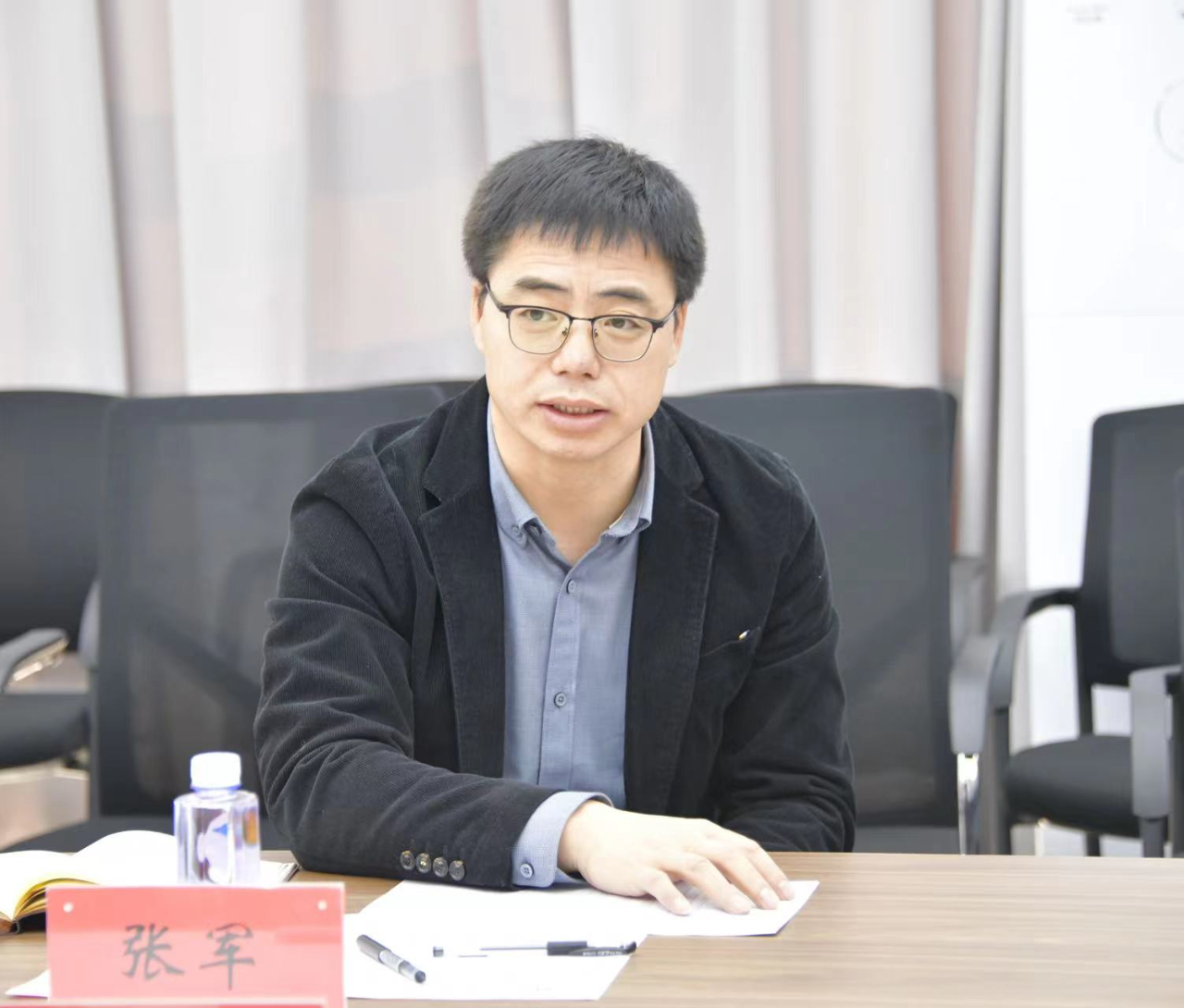 会议伊始,曹永军院长致欢迎辞,对张军校长一行来我院调研,指导工作表示热烈欢迎。曹永军院长围绕“学院基本情况介绍、师资队伍建设、人才培养与教育教学、科学研究与社会服务、亮点工作 、学科建设与研究生培养、存在的问题和困难、下一步发展思路与举措”八个方面向与会领导做了汇报。张军听取了汇报并与教师代表进行了座谈交流。