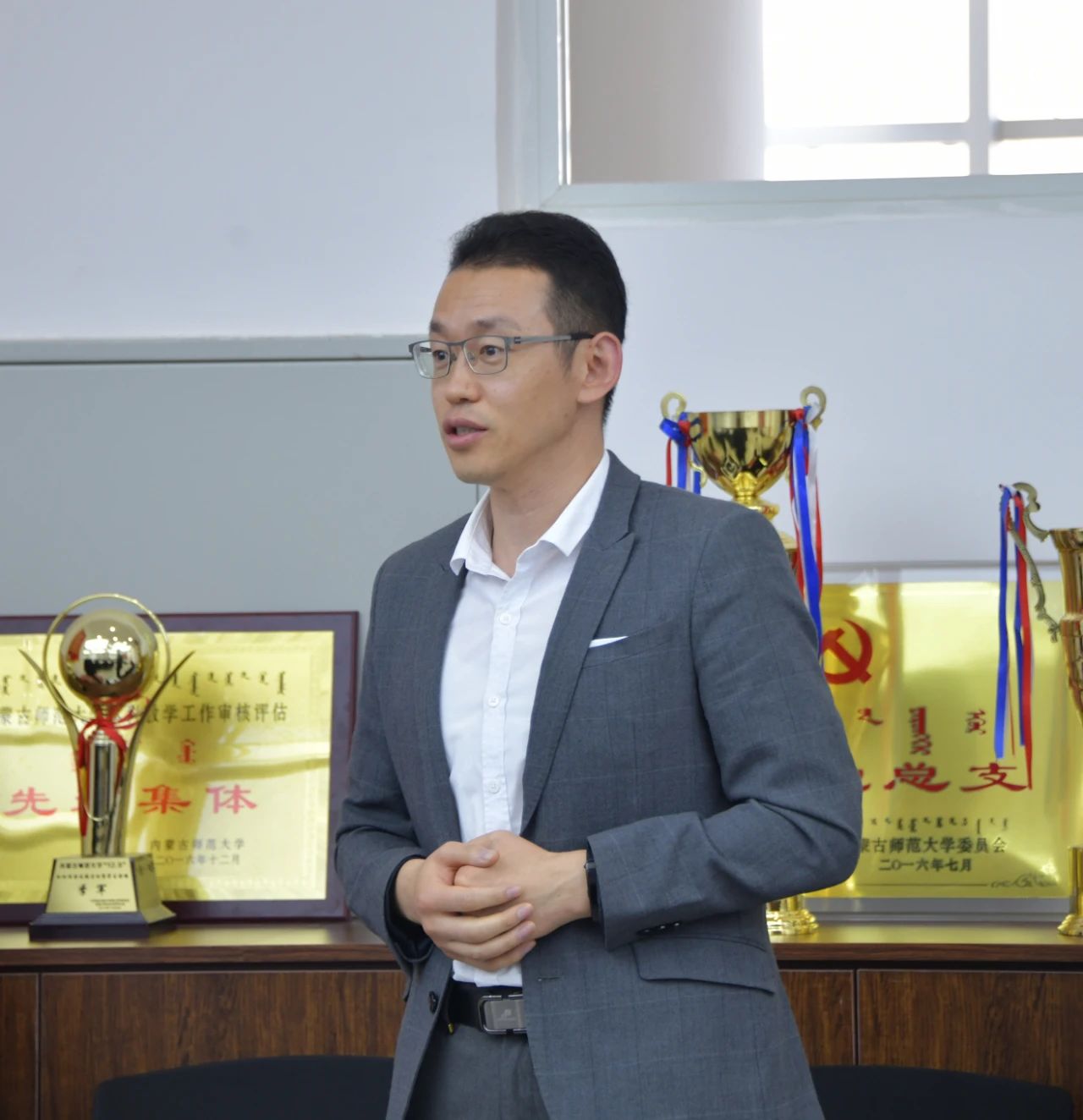 11月3日上午,永利官网校长张军、副校长宫箭、党政办公室副主任张晓阳、党政办公室综合科副科长张高峰老师一行深入yl6776永利集团进行调研并指导工作。我院院长曹永军、副院长那日苏、副院长包黎红、组织员唐立以及环节干部、教师代表参加座谈会。
