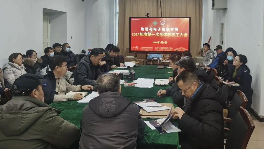 为全面总结回顾一年来学院高质量发展成果,统筹安排部署学院当前和今后一段时期的发展目标和工作任务,1月9日下午,yl6776永利集团在信息楼重点实验室召开2024年第一次全体教职工大会,学院领导班子出席会议,全体教职工参加会议。会议由党委书记张伟主持。