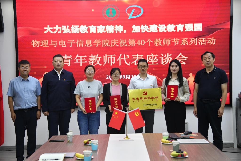 会议伊始,学院领导班子向青年教师致以节日的祝福和诚挚的问候,并为2024年获得学校“两优一先”表彰的教师张丽娜、杨艳春、宝力尔颁发奖状,为先进基层党组织教工一支部颁发奖牌。