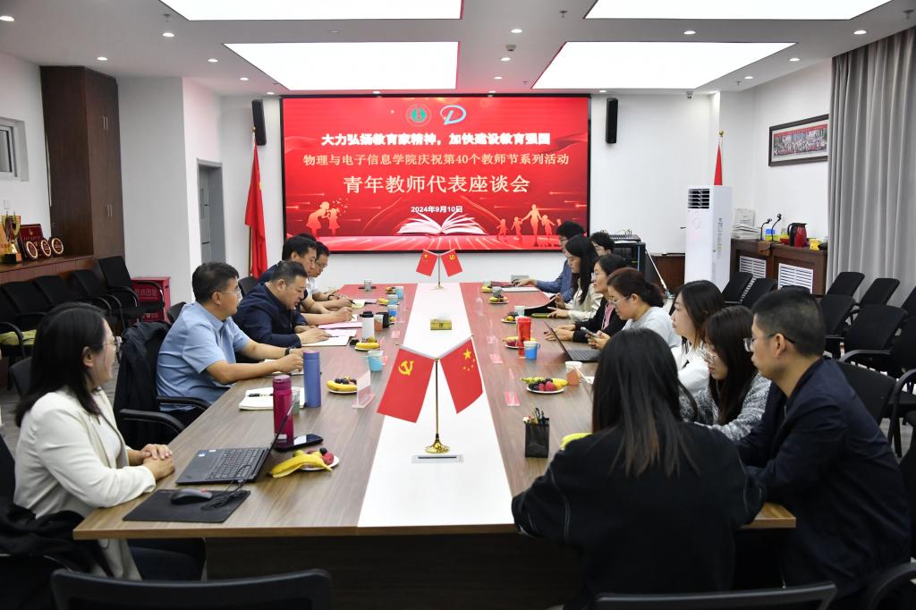 为深入学习贯彻习近平新时代中国特色社会主义思想,落实习近平总书记对教育工作的要求,全面贯彻党的教育方针,落实立德树人根本任务,大力弘扬教育家精神,进一步提升我院青年教师的专业素养,加强新时代高素质专业化教师队伍建设,喜迎第40个教师节的到来,9月10日,我院在理工楼A座701会议室召开青年教师座谈会。学院党委书记张伟,党委副书记、院长曹永军,党委副书记、副院长欧志强,副院长包黎红出席会议,青年教师代表、“两优一先”获奖教师、工会教师代表参加座谈会,座谈会由党委书记张伟主持。