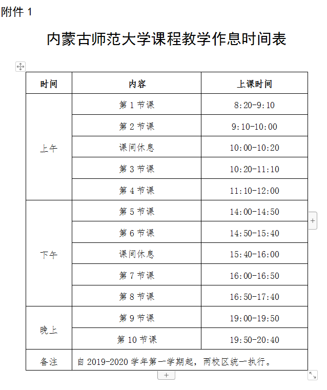 3.调整后的作息时间自2019年8月24日起,在两校区统一执行,全年不变。
