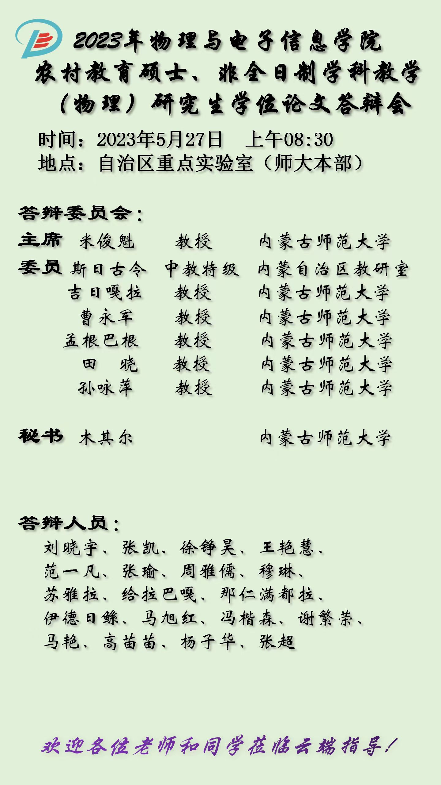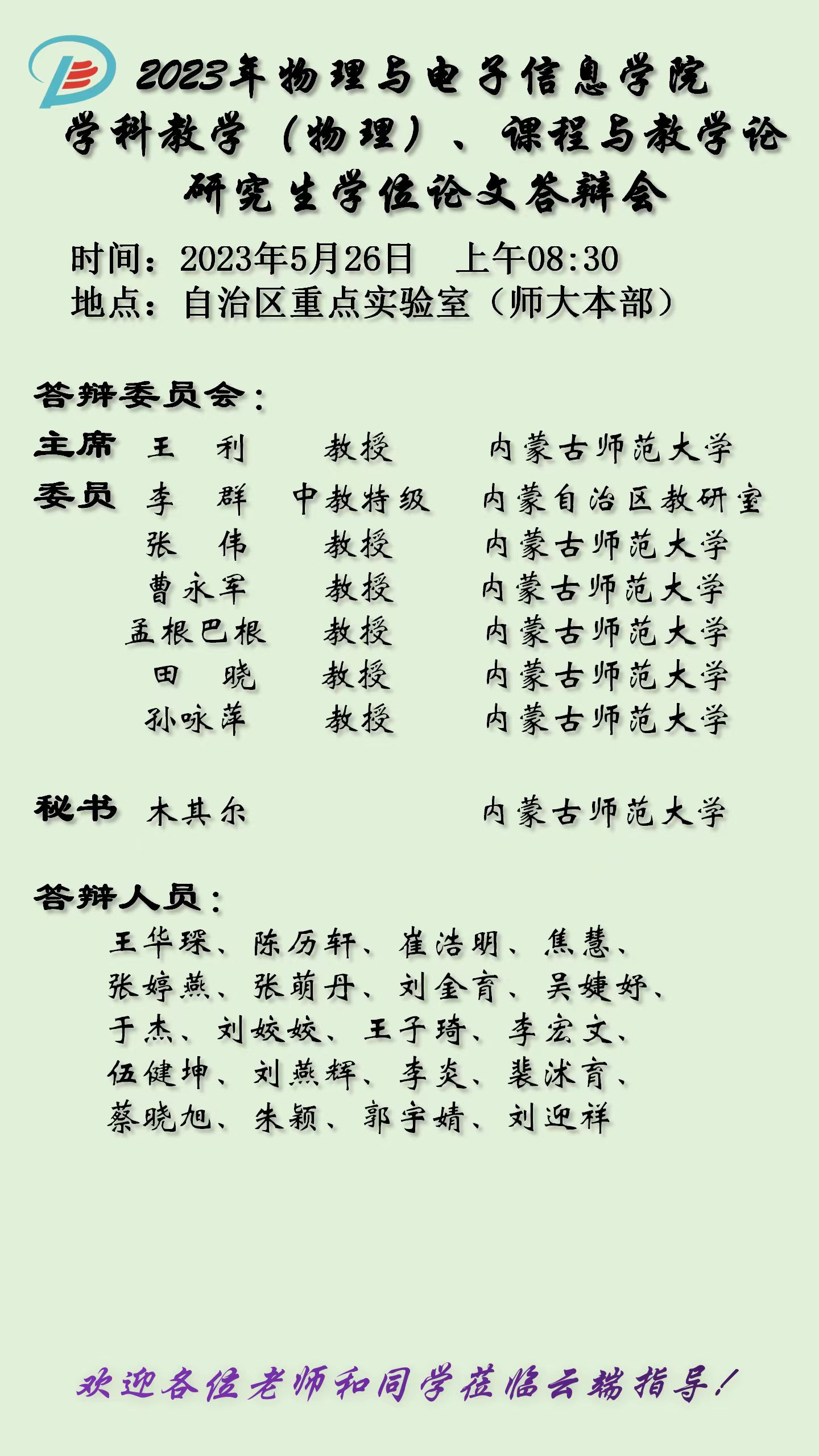 yl6776永利集团2023届硕士研究生学位论文答辩安排