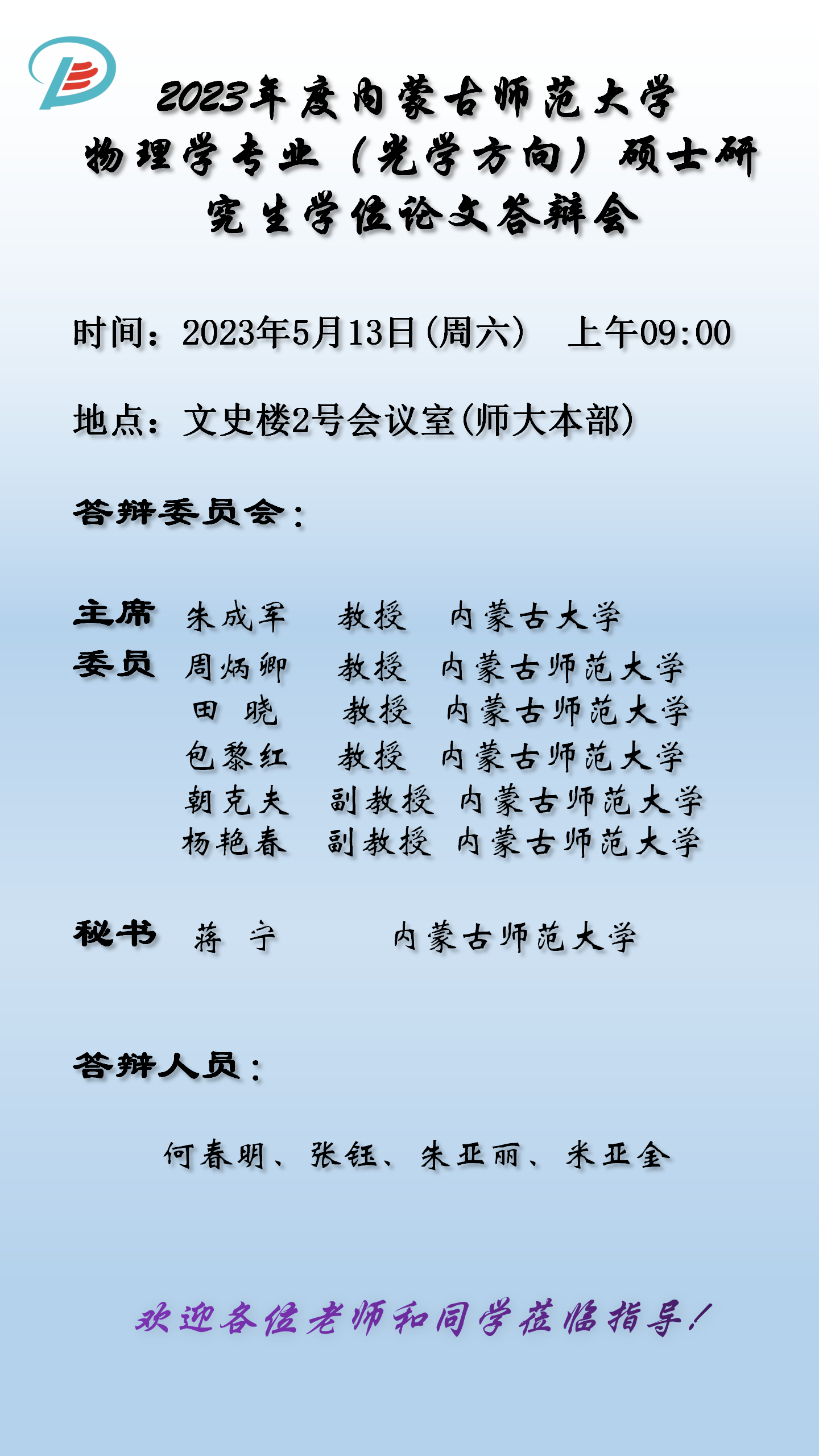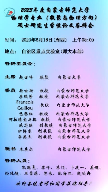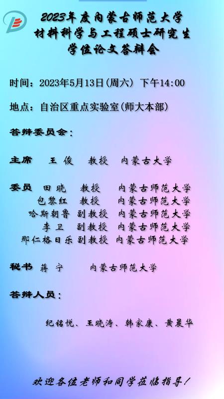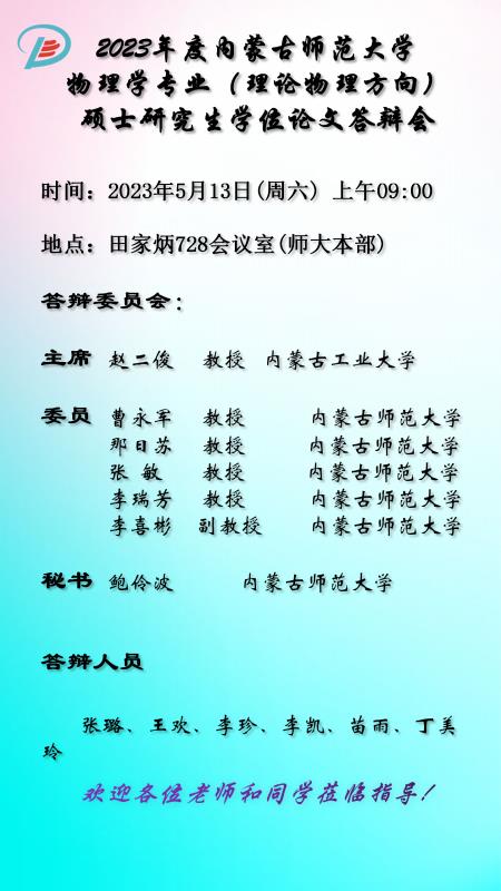 yl6776永利集团2023届硕士研究生学位论文答辩安排