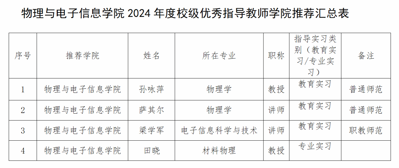 根据内师教发〔2025〕15号文件要求,yl6776永利集团2024年度校级优秀实习指导教师、实习生学院评选结果公示如下:
