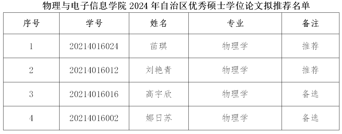 根据《内蒙古自治区博士、硕士学位论文评选办法》,依据《关于推荐申报2024-2025学年度自治区优秀博士、硕士学位论文的通知》(内师研发〔2025〕6号)通过学生个人申请、学院审核推荐,学院学位评定分委员会召开会议初审,我院拟推荐名单如下: