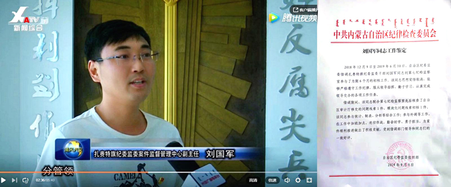 2018年7月,刘国军被调到兴安盟扎赉特旗纪律检查委员会工作,在审查调查室负责查办案件,承接了扶贫领域与微腐败方面的一些信访核实工作。2018年12月至2019年6月,在内蒙古自治区纪检委调训半年,负责纪委监委系统信息化建设。纪检工作政治要求高、工作纪律严,他到纪检监察委员会工作以来,不断学习政治理论,认真学习和领会各级有关纪检监察工作法规、规章制度,文件、会议精神等,积极调整自己工作方式,脚踏实地,迅速投入到扶贫领域的各项工作中去。从单位各科室人员身上学到了许多在机关工作学不到的新知识、新方法、新思路,受益匪浅。经过两年的工作锻炼,他不断完善修正自我,练就了过硬作风,深化了对纪检工作的认识,积累了丰富的经验。在近两年查办的案件当中,收回基层微腐败、扶贫领域等涉案资金20余万元。