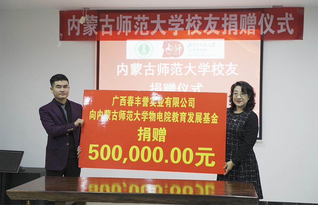 为庆祝母校70华诞,我校yl6776永利集团2005级校友、青年企业家、广西春丰誉实业有限公司董事长王春先生,怀着浓情捐资捐物50万元,在永利官网教育发展基金会设立yl6776永利集团教育发展基金,助力学校、学院师生教育、就业创业、校友事业、基本建设和相关性的学校教育发展。公司将在三年内向该专项基金账户捐赠价值50万元的款项或实物。这既是对母校70华诞的美好祝福,更是对学校、学院发展建设的有力支持。