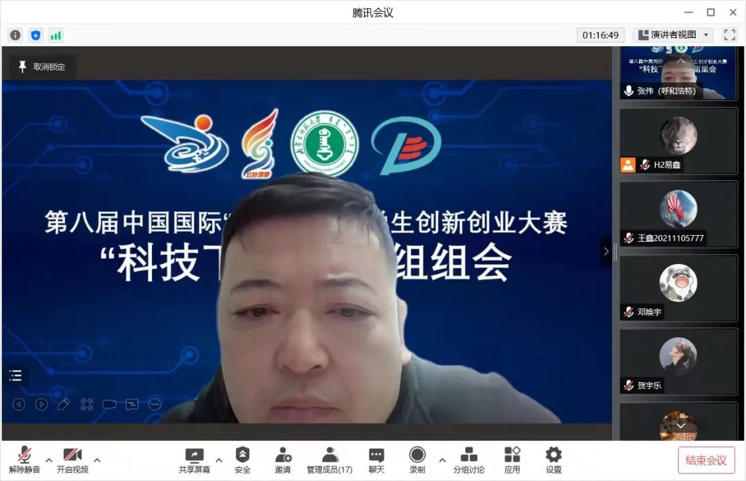 为积极迎接即将到来的第八届中国国际“互联网+”大学生创新创业大赛,3月19日下午,我院线上召开第八届“互联网+”大学生创新创业大赛“科技下乡-坚持20年的物电学子助力乡村振兴公益服务新模式”项目交流讨论会。学院党委副书记兼副院长张伟,团总支副书记宝力尔及全体项目组成员参加会议。