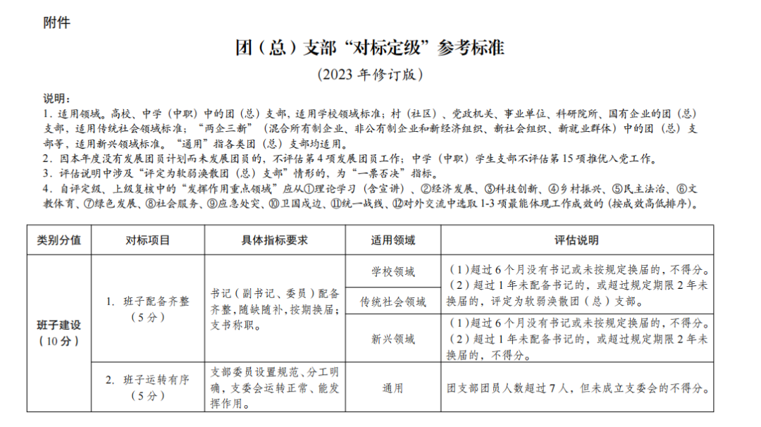 附件:团(总)支部“对标定级”参考标准(2023年修订版)