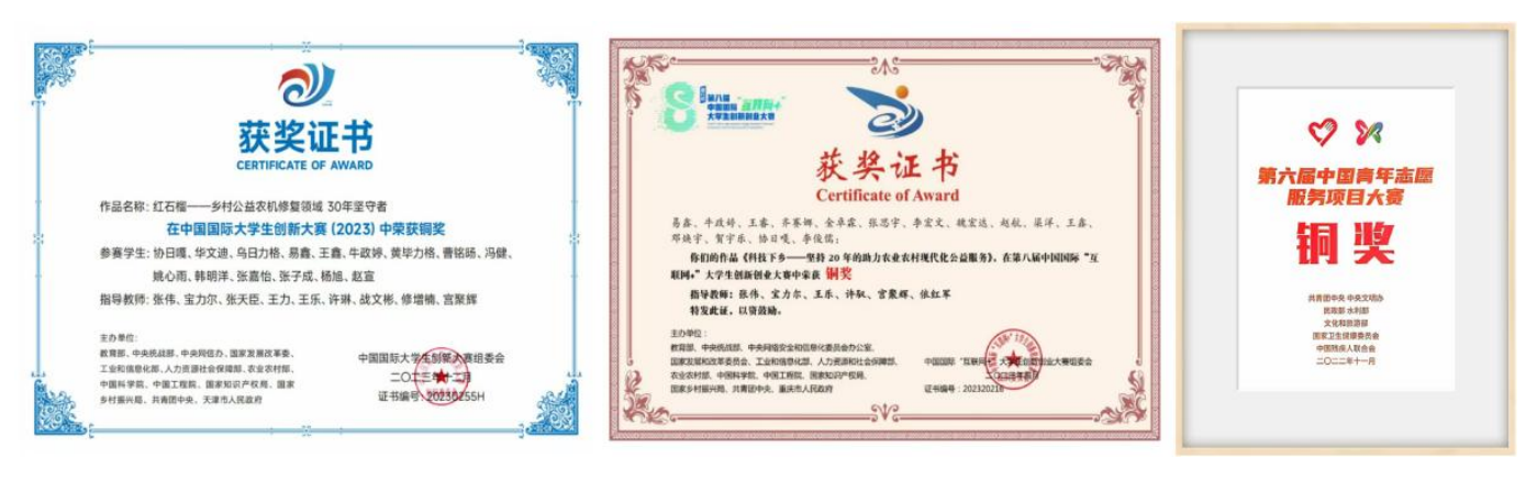 服务队所获国家级荣誉奖项