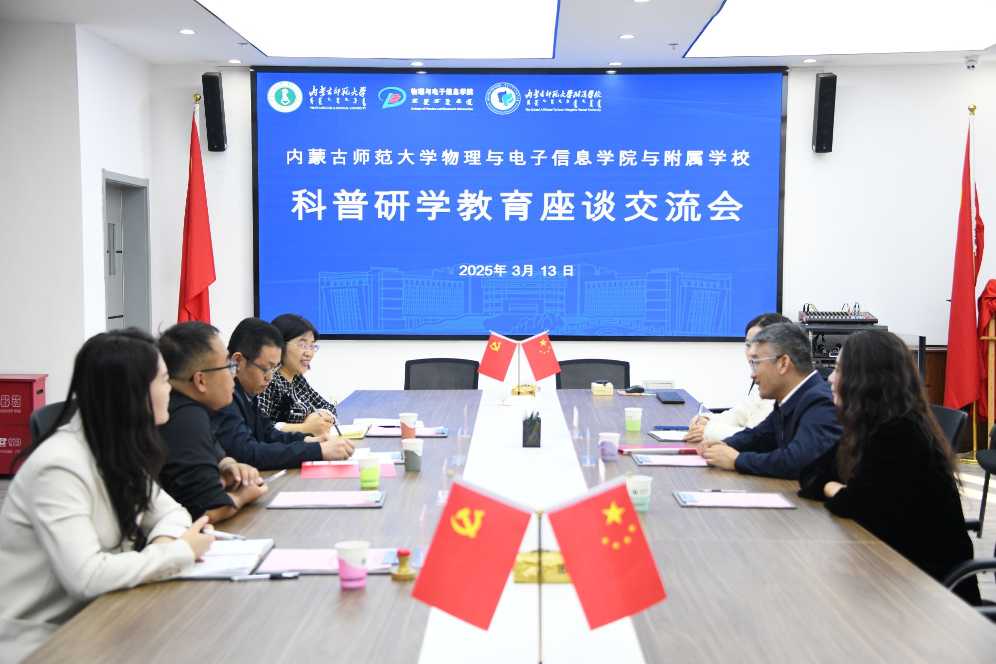 为促进我院与中学之间的合作与交流,推动科普研学教育的发展,3月13日,我院在理工楼A座701会议室与附属学校开展科普研学教育座谈交流会。附属学校副校长李晓波、党政办于淼、团委鲍雪倩、yl6776永利集团党委副书记、副院长欧志强、物理系主任孙咏萍、实践与创新工作室负责人杨帆出席会议,会议由团总支书记宝力尔主持。