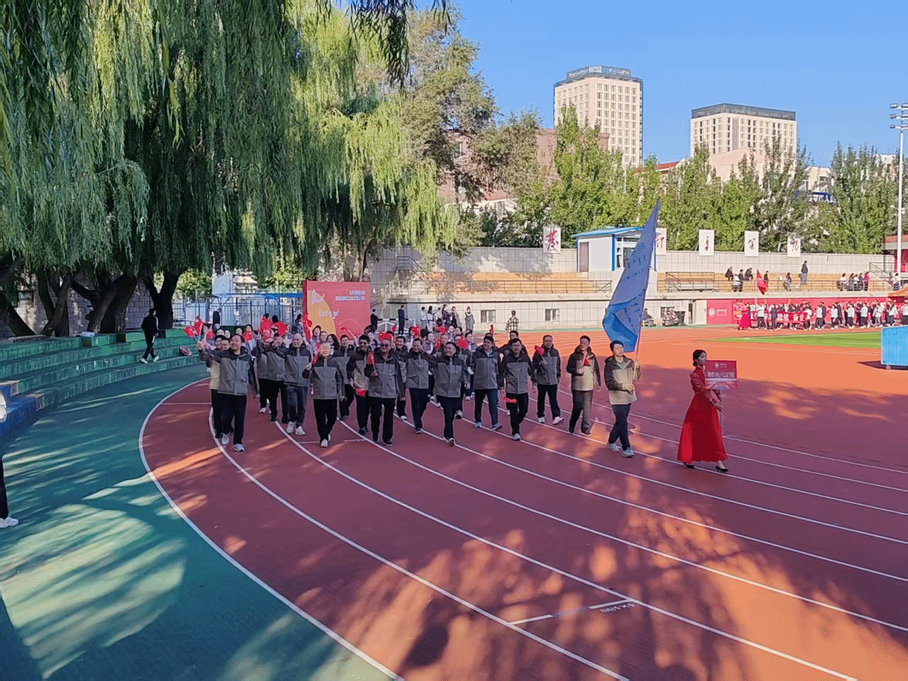 开幕式上,物电院教职工方阵步伐矫健,口号响亮。他们身着统一的服装,精神抖擞地走过主席台,展现出不同于平日三尺讲台的飒爽英姿,瞬间点燃了全场热情,成为运动场上一道亮丽的风景线。