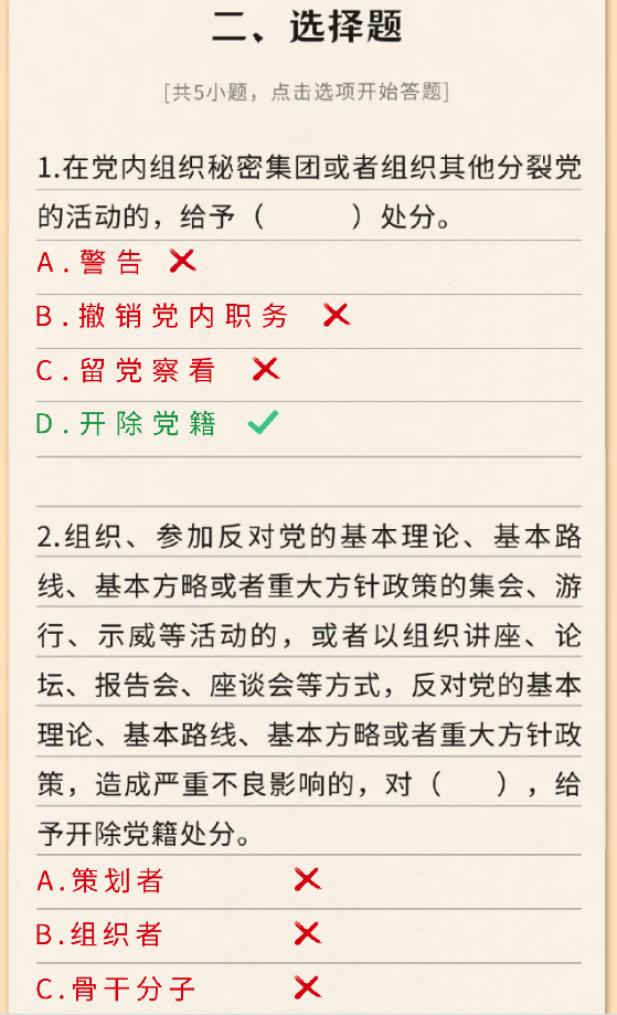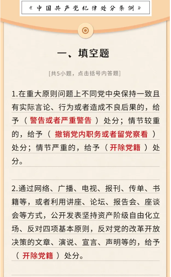 【党纪学习教育】《中国共产党纪律处分条例》测试题(一)