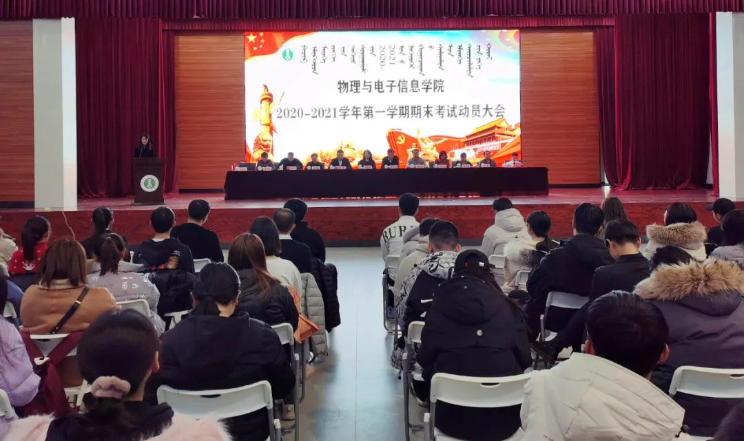 为切实推进学院学风建设,倡导诚信考试,让同学们坚定信心,在即将到来的期末考试中考出好成绩,12月25日下午,我院举办了2020—2021学年第一学期期末考试动员大会。学院党委书记刘美玲、副书记兼副院长曹永军、副书记兼副院长张伟、副院长那日苏出席,各系主任、教师代表、20级全体同学以及其他年级部分学生参加,会议由团总支负责人宝力尔老师主持。