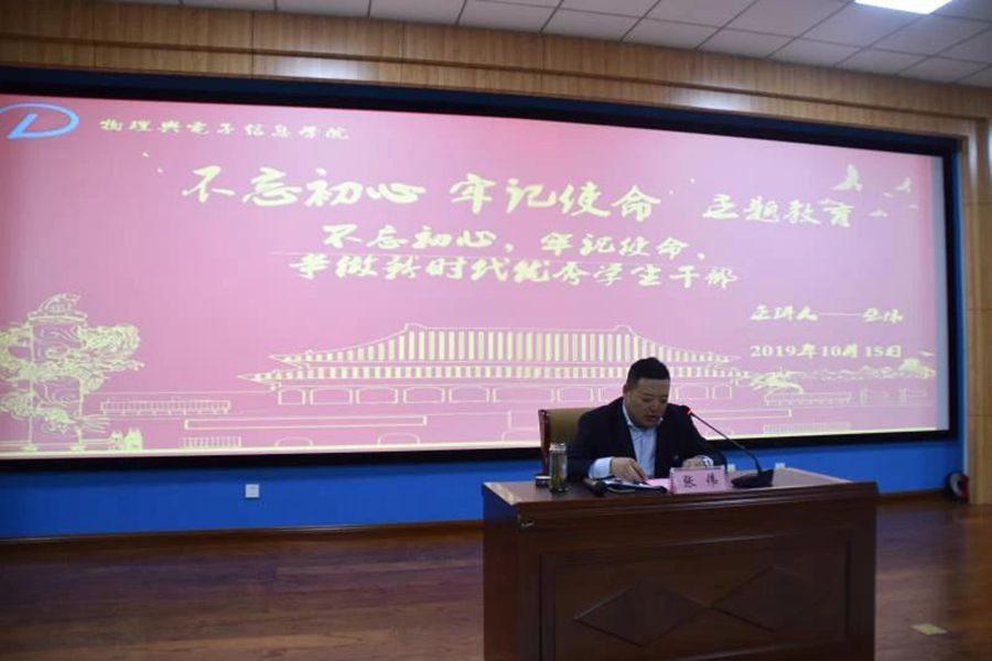 为深入贯彻十九大精神,加强学生干部队伍建设,提高学生干部的政治素质、工作水平和实践能力,10月15日,在全院开展“不忘初心、牢记使命”主题教育之时,yl6776永利集团组织开展了2019学年学生干部培训。本次培训以“不忘初心,牢记使命,争做新时代的优秀学生干部”为主题,由学院党总支副书记兼副院长张伟主讲,学院团学负责老师、辅导员与学生会、各班团学生干部等100余人参加培训讲座。