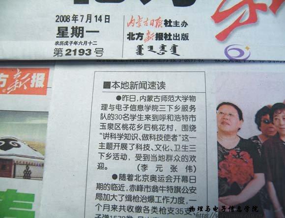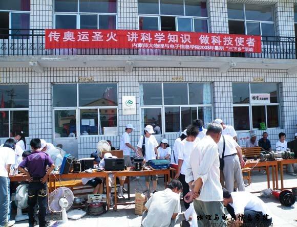 yl6776永利集团志愿者服务队曾荣获2006年度全区大中专学生暑期“三下乡”社会实践活动“优秀志愿者服务队”,现有成员30余名,暑假期间服务队将围绕科技支农、科技兴农等社会热点,在呼市周边农村以及其它地方开展为期一个月的“科技宣传和义务维修”活动,为当地农民群众传授科学知识,并解决部分农民朋友的实际困难。