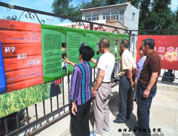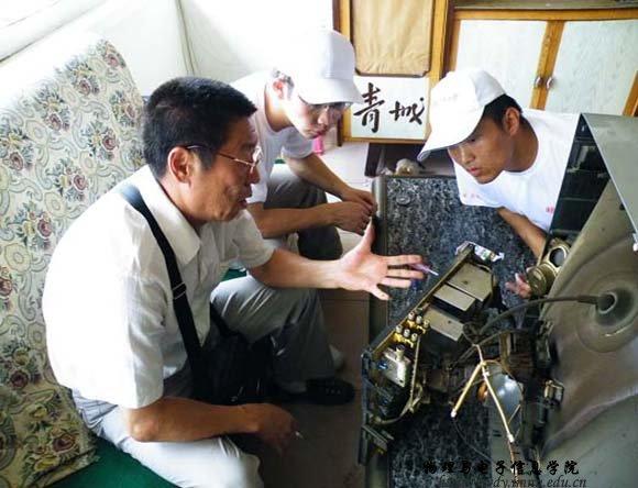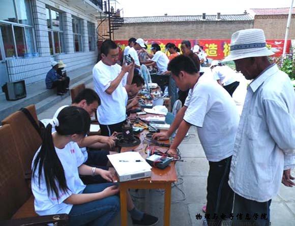 7月13日,本次服务队由院学工办张伟老师和专业指导老师克伦带队,共30名学生来到玉泉区桃花乡后桃花村进行社会实践活动。上午8时,志愿者们在村委会院内张贴了“电视技术发展历史百年回顾”、“电视机的维护与保养”、“怎样选购电视机”等科学知识宣传展板,设置了科技知识讲台,同时也设立了家电义务维修点。听说这一消息后,来聆听科技知识讲座和维修家电的农民群众络绎不绝,前来咨询电视机购买、维修、使用等相关问题的农民朋友都得到了满意的答复。活动一直延续到傍晚,送到维修点的电器有电风扇、电饭锅、电视机、DCD、录音机、热水壶、收音机、遥控器等118件,修好80余件。本次活动受到了当地乡政府、农民群众的热烈欢迎。