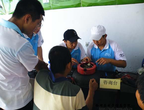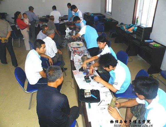 本次“三下乡”服务队是由yl6776永利集团电子科技协会成员组成,该协会前身是内师大物理系无线电小组创立于1992年。协会自创立以来,本着发展自我,为社会服务的原则,不断探索,刻苦钻研,逐渐壮大。维修队伍经常深入学校、社区、农村义务维修各种电器,协会中的每位成员在服务中既锻炼了自身能力,也为建设社会主义和谐社会做出了应有的贡献。