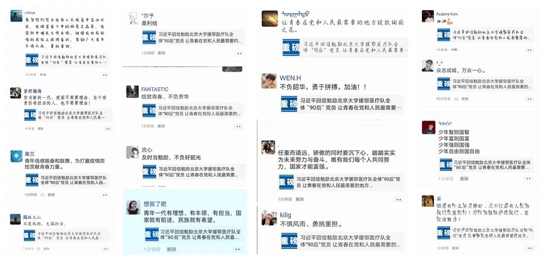 灾难当前,每一次数据变化都牵动着全国人民的心,在这场全世界的考验中,我国表现出了超时代的大爱,充分展现了身为一个东方大国的责任与担当。而在这场没有硝烟的战争中,无数青年主动请缨,于阴霾疫情中注入新的生机与力量,在实践中成长,在磨难中奋战,我们终将成为疫情防控的中坚力量,以青春背负时代热血,在华夏大地绽放崭新的未来。