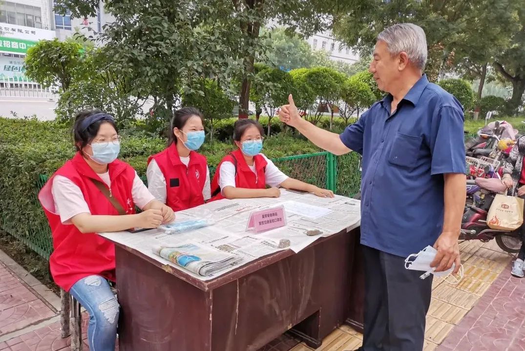 建行是阳原县业务量最大的银行,不戴口罩不允许进入大厅办理业务。服务期间,宋浩楠同学不厌其烦地把口罩送到需要的顾客手中,并指导前来办理业务的顾客填写表格。从8月1日至3日,三位志愿者发放口罩近150个。在灿烂阳光的照耀下,志愿者的红马甲更加耀眼夺目。
