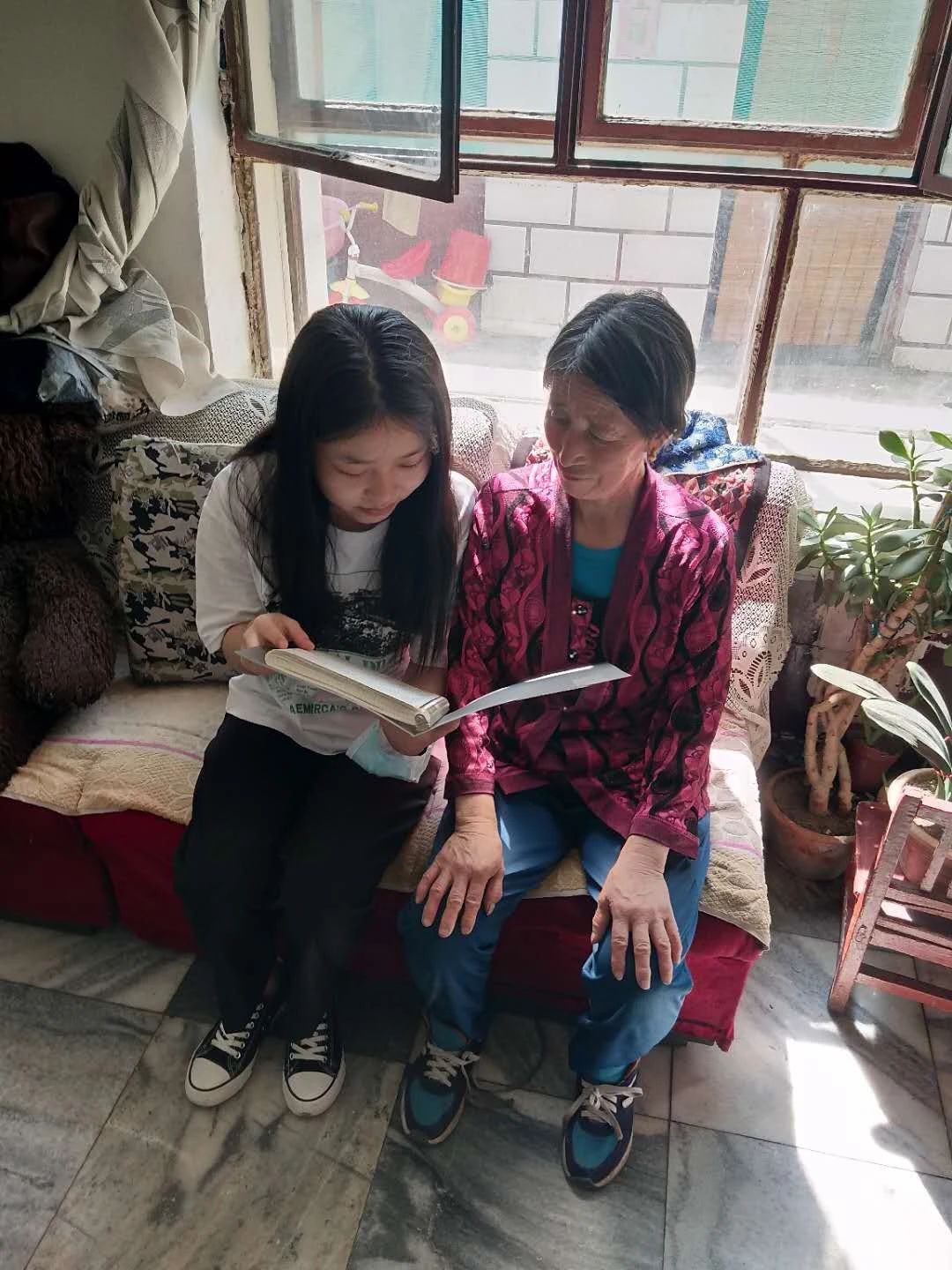 8月7日,17级电子信息工程二班边艳芳同学来到巴彦淖尔市临河区新城街道办事处爱丽舍社区居委会,看望了社区的独居、空巢老人,与他们拉家常。