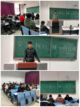 在此次团日活动中,各团支部开展了以学习习近平新时代中国特色社会主义思想为主线的形势政策教育,大力进行爱国主义和社会主义荣辱观教育,帮助学生树立正确的人生观、世界观和价值观,引导学生更加深刻真切地理解社会主义核心价值观的意义内涵,将社会主义社会主义核心价值观的内容具体化、形象化、日常化,帮助他们“扣好人生的第一粒扣子”,成为自觉践行社会主义核心价值观的青春代言人。