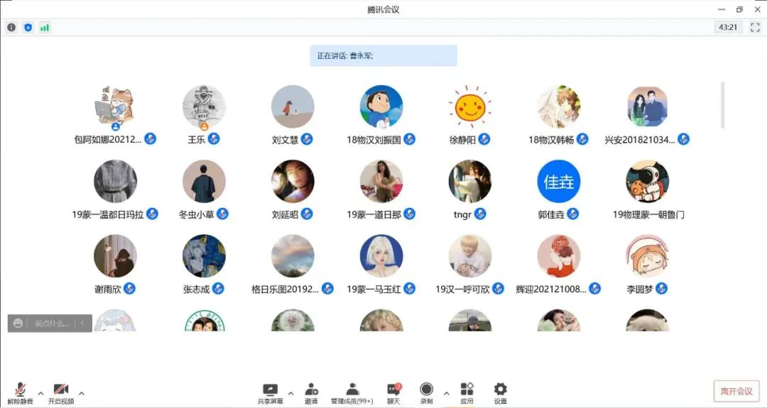 出席会议的有院长曹永军、党委副书记张伟、副院长那日苏、物理系主任朝克夫、团总支副书记宝力尔、辅导员朝鲁门,18级物理学汉班班主任其木格、18级物理学蒙班班主任伊博乐、19级物理学蒙1班班主任乌仁图雅、19级物理学汉1班班主任张院生、19级物理学汉2班班主任李喜彬、19级物理学专业全体学生列席参会,会议由学就办副主任王乐主持。
