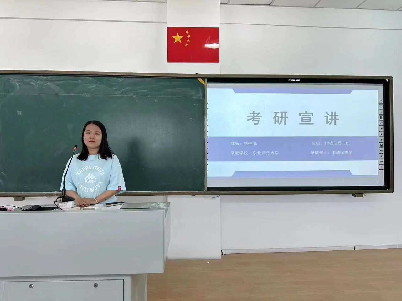 随后,由我院物理学专业考研宣讲团:2019级物理学汉1班魏少强、2019级物理学汉1班齐晓秀、2019级物理学汉2班隋林泓和2019级物理学汉2班贾春硕,4名成员依次做考研经验分享。