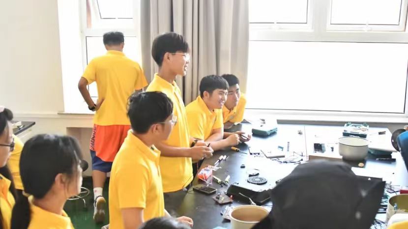 课堂上,克伦老师对基本的电路知识进行了深入讲解,例如:色环电阻的读数、电容的种类、晶体管的分类及测量、电器件的电路原理图等。针对一些常见的家用电器,对它们可能出现的故障、维修方法以及检查、维修过程中需要用到的仪器进行了详细的讲解。例如:在维修一个坏了的电热水壶时,首先要进行观察,电热水壶是否是因为电线破损或是电线与热水壶接口处接触不良等外部原因导致电热水壶无法正常工作。其次,用指针电表对热水壶底部通断情况进行测量,确定是哪一部分出问题,注意测量时若是使用指针电表则红表笔接负极黑表笔接正极,若是万用表则刚好相反。如果需要拆开来修,注意观察拆解之前每个零件的安装位置并好好保管拆下来的每个零件,避免组装时出现忘了零件在什么位置或者缺失零件以及组装好后多出零件的情况。最后,检查无误后,进行组装。