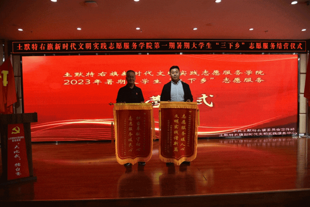 “土右旗是座志愿服务之城,爱上志愿服务,爱上土右旗……”来自yl6776永利集团的学生协日嘎分享着自己的志愿服务感受,在土默特右旗新时代文明实践志愿服务学院大学生暑期“三下乡”志愿服务活动结营仪式上,旗人民政府副旗长谢岷、孙文秀为大学生志愿者们颁发荣誉结业证,yl6776永利集团党委书记张伟、内蒙古农业大学机电工程学院院长张永为土右旗新时代文明实践服务中心赠送锦旗,旗委常委、政府副旗长英春希望志愿者们把土右旗作为“自己的第二故乡”,常回家看看、常回家听听、常和老乡唠唠、常帮老乡干干,共同努力为土右旗新时代文明实践事业贡献更多力量。