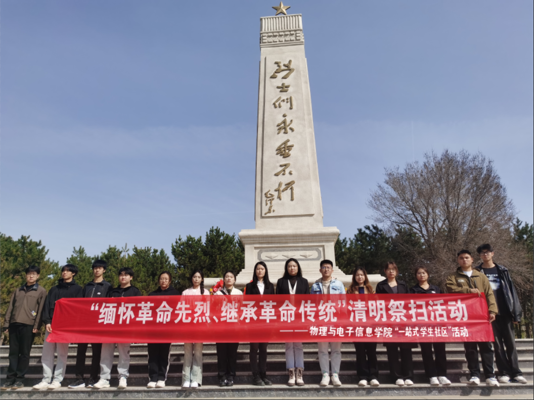 为引导在缅怀先烈、慎终追远的情怀中弘扬中华传统美德,4月5日,学就办主任王乐,团总支书记宝力尔、辅导员冀锦涛老师走进“一站式”学生社区,带领受资助学生赴和林格尔县烈士陵园开展了“缅怀革命先烈、继承革命传统”清明祭扫活动。