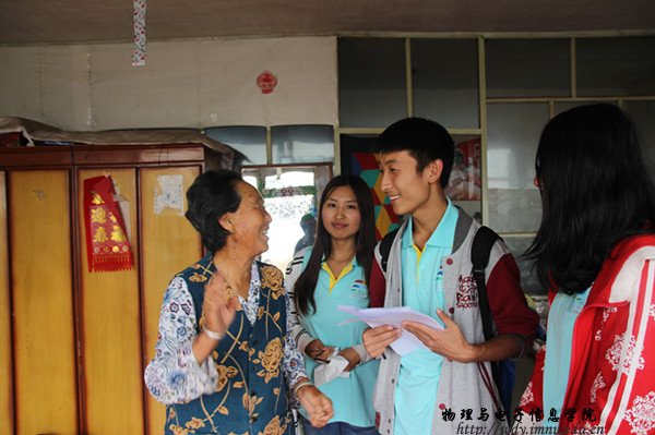 本网讯 2016年7月21日上午,我院学生“三下乡”服务队组织进行回访活动,对村里我们进行过电器维修的用户做了再一次走访慰问。同时,我们还为乡亲们带去了小礼物。礼轻情义重,乡亲们接过小礼物的时候,他们憨憨的笑着,眼中却早已饱含深情泪花。看到乡亲们用着我们修好的电饭煲做饭,用着我们修好的电视机看着电视剧,用着我们修好的收音听新闻,一种自豪感不禁地在我们内心涌动。“大学生就是大学生;娃娃的学没白上;感谢感谢;为内师大物电院点赞……”,这些从乡亲们口中说出来必须仔细听才能听懂的当地话,让我们觉得没有白来,我们用热情和知识为乡亲们带来了实打实的帮助。我们要为自己在“三下乡”这个第二课堂中的表现打满分。