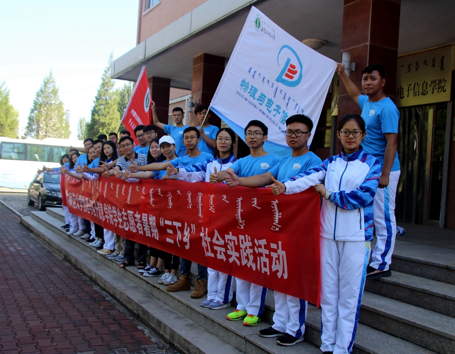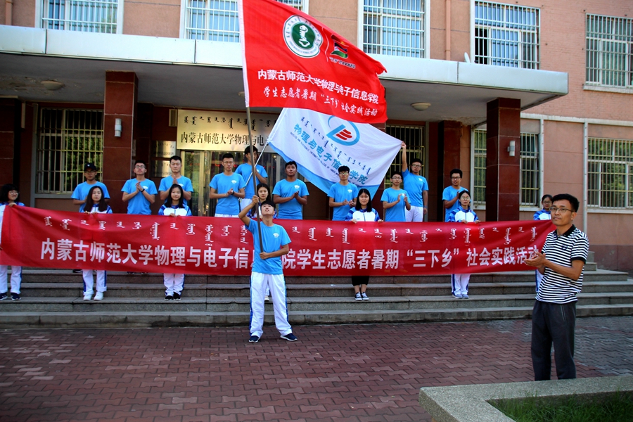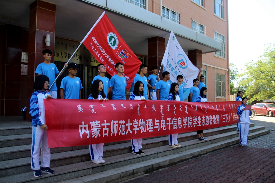 2018年7月14日,我院于物理楼前举行暑期“三下乡”社会实践活动出征仪式。学院党总支副书记何小龙老师、团总支书记萨其尔老师、志愿服务队指导教师克伦老师、学工办木其尔、芦嘉琛、苏日、宋鑫伟老师及志愿服务队成员参加仪式,由萨老师主持仪式。