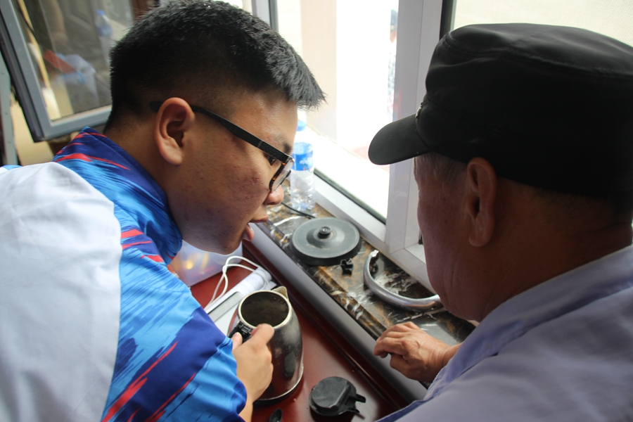 据闫鹏旭书记介绍,昆新社区是一个异地搬迁的社区,社区中大部分的青壮年已外出务工,所以有很多的空巢老人,于是志愿服务队在社区居委会老党员与消防员的带领下,进入到社区的互助幸福院进行慰问及防火防盗宣传。当我们走入到一户人家后,为他们送上慰问品,随后在之后的交谈中才知道这位老人独自带着患有脑瘫的小孙子,但她并没有怨天尤人,而是积极的面对生活,说现在连老家都不想啦,政府给的优惠也特别多,住上了楼房,每个月还给发钱……听到这里我们为老奶奶豁达的态度所折服,也为她的经历而感到悲伤。