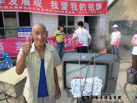 匆忙的吃过午饭后,我们直接动身来到了呼市周边第二站——田家营。我们已经不是第一次来到这里了,我们仍然将维修地点设在田家营小学院内,在这里看到了很多熟悉的面孔,看着村民们都期待着我们的到来,那种感觉特别亲切。赵金锁大爷竖起大拇指激动的对我们说:“感谢娃娃们照顾人民,为人民服务,电视早就不能看了,你们一来就(修)好了。希望你们以后能常来!”
