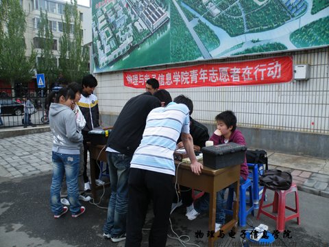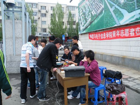 5月19日中午12点半,我院电子科技协会在校北门举行义务维修活动,风雨中协会成员们却不懈怠手中的工具,依旧专心致志地进行手中的修理工作,本次维修主要收到的故障电器主要是专业耳机、mp3播放器、台灯等,我院家电维修部会在将来一如既往地为广大师生排忧解难。