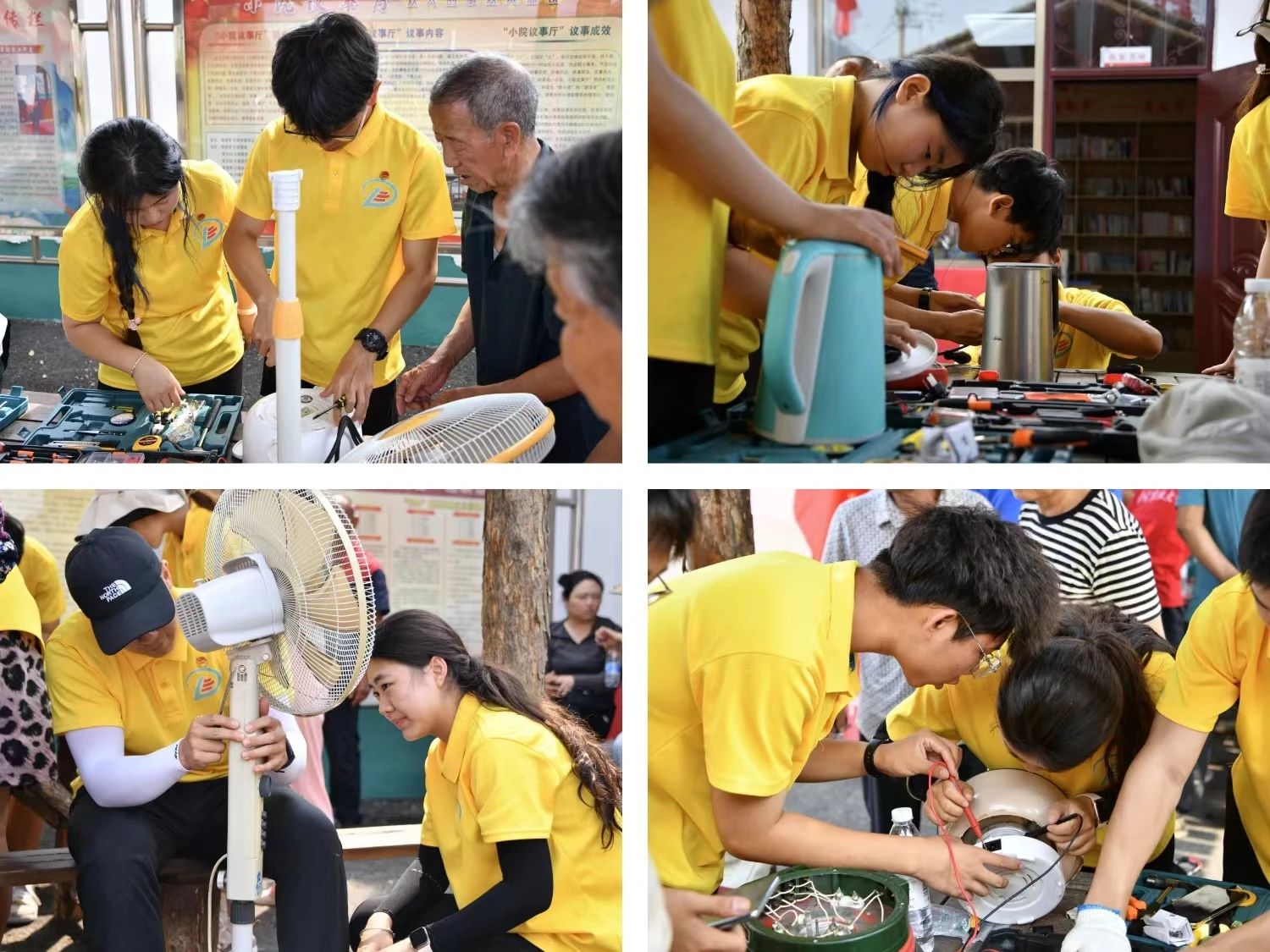 为深入学习贯彻习近平总书记给中国农业大学科技小院的学生回信精神,鼓励青年学子运用专业知识开展科技支农活动,引导学生关注乡村发展、投身乡村振兴,7月9日,我院“红石榴”乡村振兴促进团师生和内农大机电院师生前往土右旗苏波盖乡美岱桥村、美岱召镇沙图沟村开展志愿服务活动,帮助村民们修理电风扇、热水壶、电饭锅、洗衣机、电冰箱、电视机等家电,为群众照相、换灯泡、普及安全用电常识。