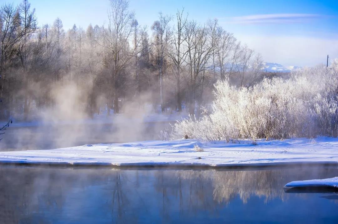 一候水始冰:立冬时节,水面开始逐渐凝结,山青水色的倒影被洁白冰面上的灿烂光芒,逐渐覆盖。
