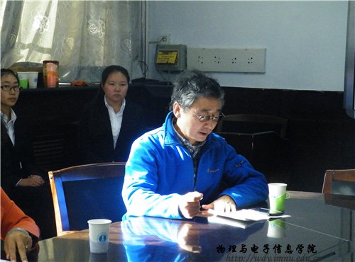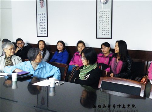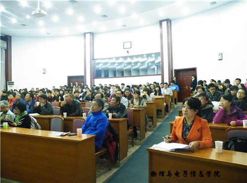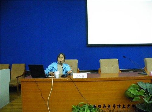 (本网讯图/文蔡雅芳冯楷森/郑武超)2014年10月12日上午9点,由中国物理学会女物理工作委员会主办,内蒙古自治区物理学会与我校共同承办的第二届中国物理协会女科学家巡回报告会在信息楼报告厅举行,并于下午三点在我院会议室召开物理学交流研讨会;来自中国物理学会的专家吴令安教授、厚美瑛教授和严燕来教授分别作“小小的单光子,大有作为”、“谈谈文理渗透与人格养成——从宇宙、自然与人谈起”、“物理学家的沙箱”学术报告,并与全院师生亲切分享事业家庭等方面心得体会;我院院长特古斯教授、副院长吉日嘎拉教授、副院长刘美玲老师等领导老师及我院研究生和本科生参加了以上活动。