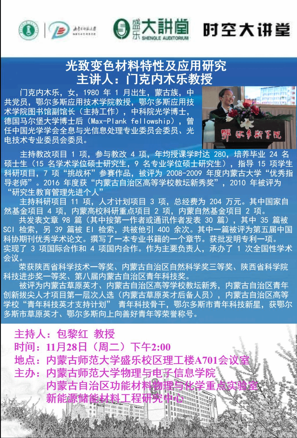 【预告|时空大讲堂】光致变色材料特性及应用研究