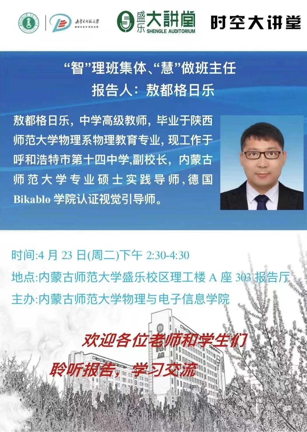 【预告|时空大讲堂】“智”理班集体“、“慧”做班主任
