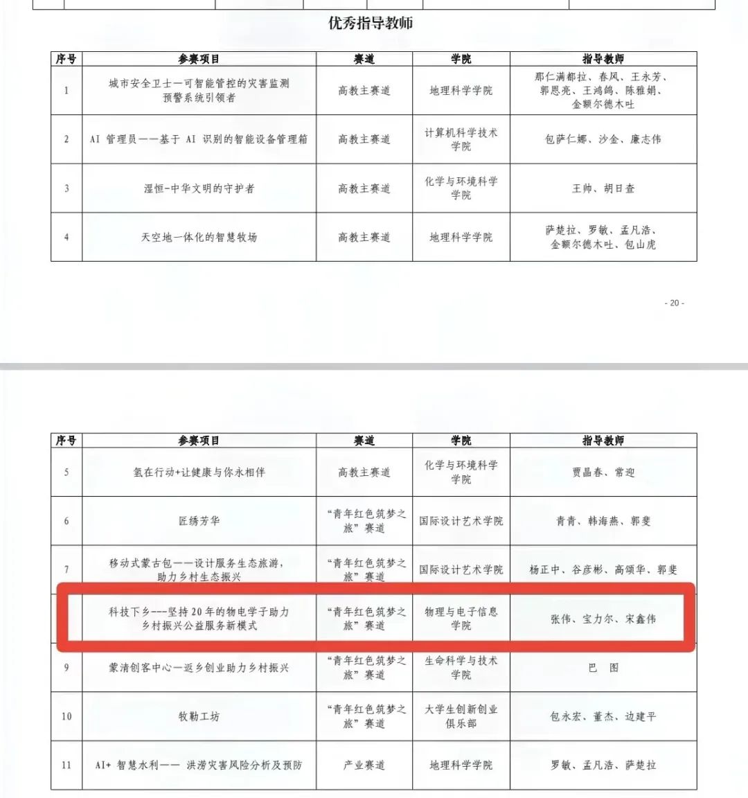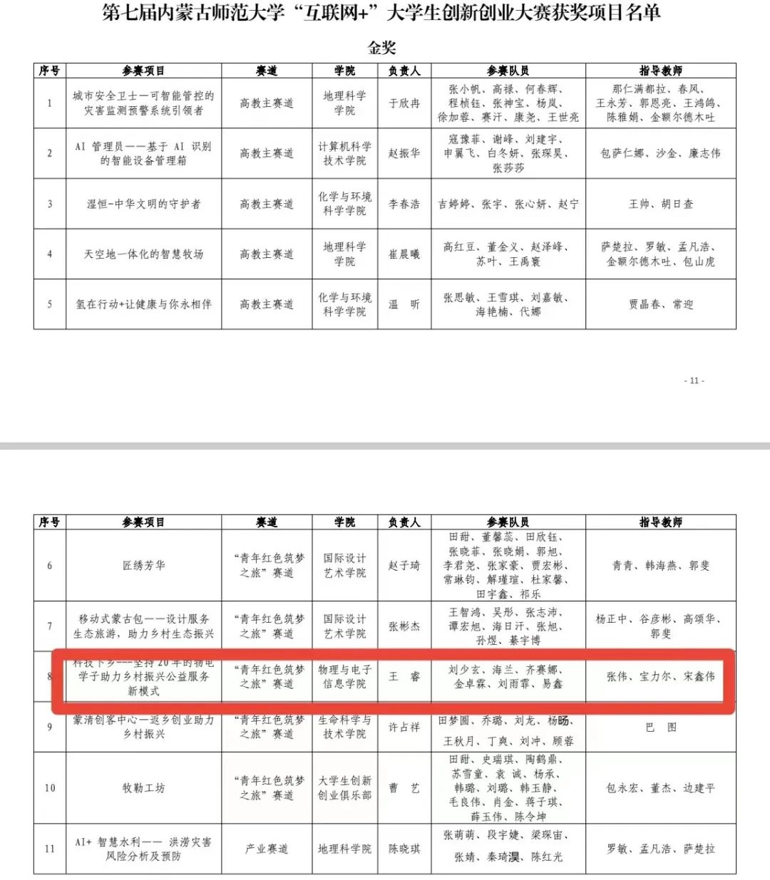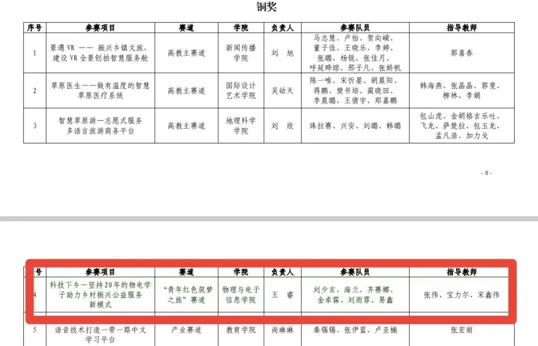 近日,永利官网下发内师校发〔2022〕7 号文件,《关于表彰第七届永利官网“互联网+”大学生创新创业大赛暨“青年红色筑梦之旅”活动先进集体和个人的决定》,其中,物电院“科技下乡---坚持20年的物电学子助力乡村振兴公益服务新模式”项目在第七届内蒙古自治区“互联网+”大学生创新创业大赛中获得内蒙古自治区铜奖、校级金奖,指导教师被评为优秀指导教师。
